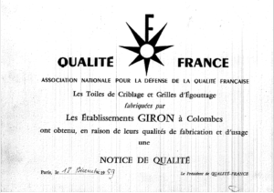 Depuis 1924, l’entreprise Giron s’illustre par son expertise dans la fabrication de toiles et grilles de tamisage et de criblage en acier et en polyuréthane. Son savoir-faire ancestral, transmis de génération en génération, lui a valu l’obtention du label Entreprise du Patrimoine Vivant (EPV), une distinction qui reconnaît l’excellence et la pérennité de ses savoir-faire artisanaux.