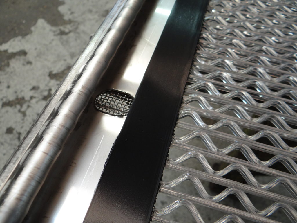 Si le choix s’oriente vers une matière très rigide comme l’acier haute résistance, on peut se contenter d’en mettre peu entre chaque trou pour assurer une tenue mécanique suffisante de la grille. Si au contraire le choix conduit vers une matière plus souple comme le caoutchouc ou le polyuréthane, on doit mettre davantage de matière pour garantir un maintien dimensionnel de la maille.