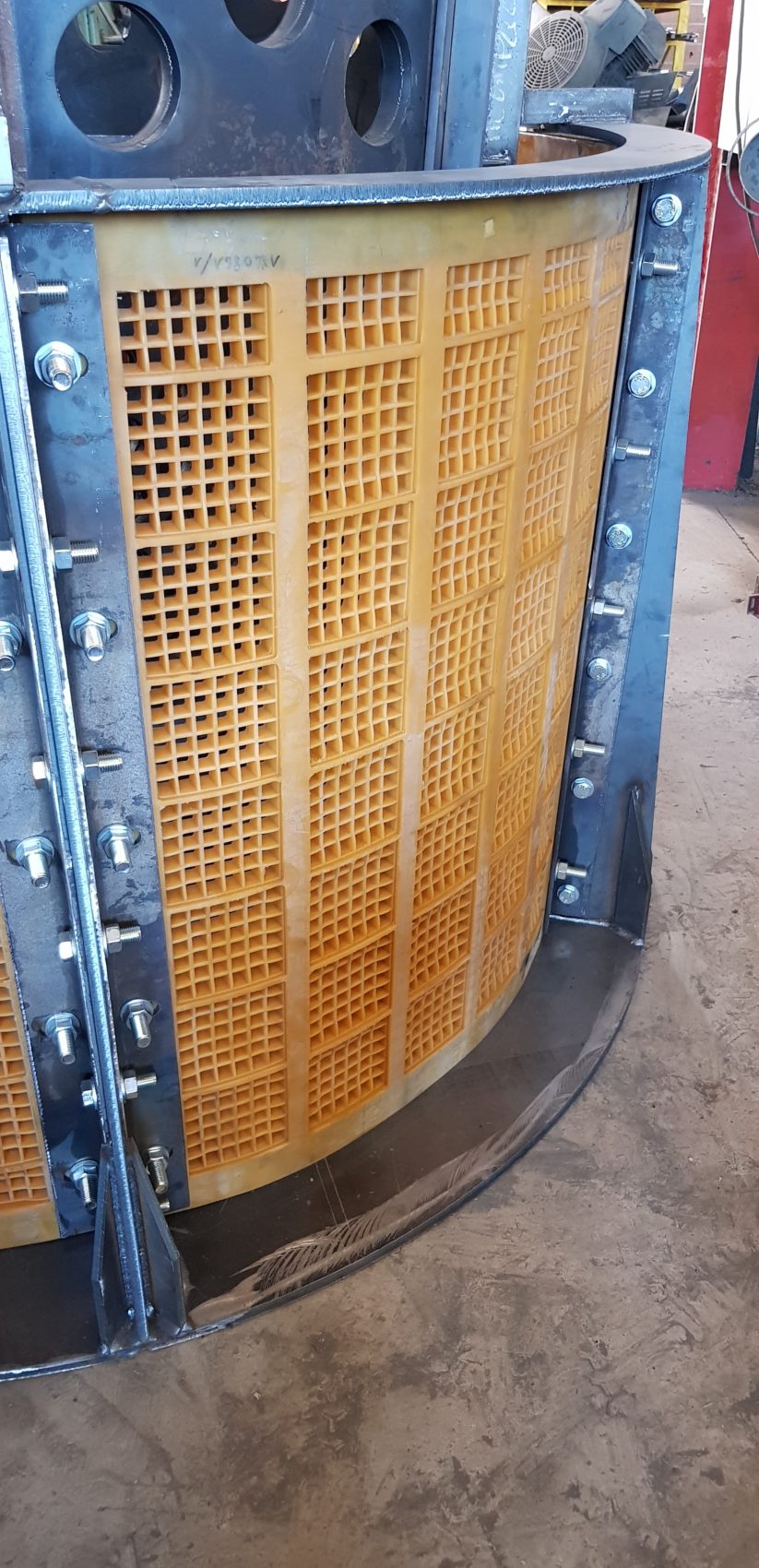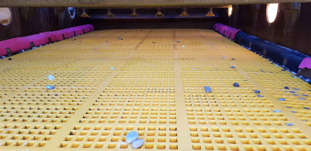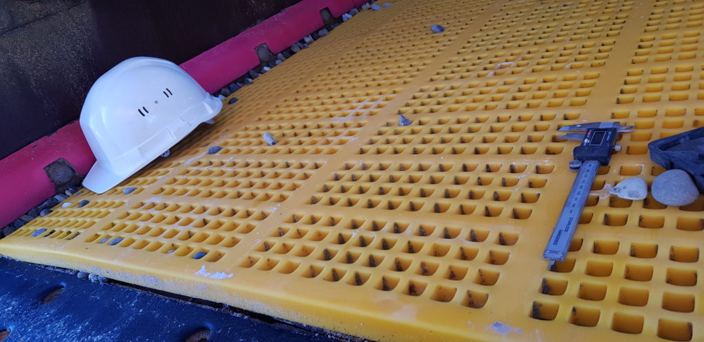 Les toiles en polyuréthane ayant une capacité d’allongement importante, elles doivent être renforcées par des câbles d’acier afin de garantir un maintien de l’ouverture de maille mais aussi une bonne tenue mécanique à la tension, qu’elles soient montées en tension latérale (perpendiculaire à l’avancement des produits) ou en tension longitudinale (parallèle à l’avancement des produits).